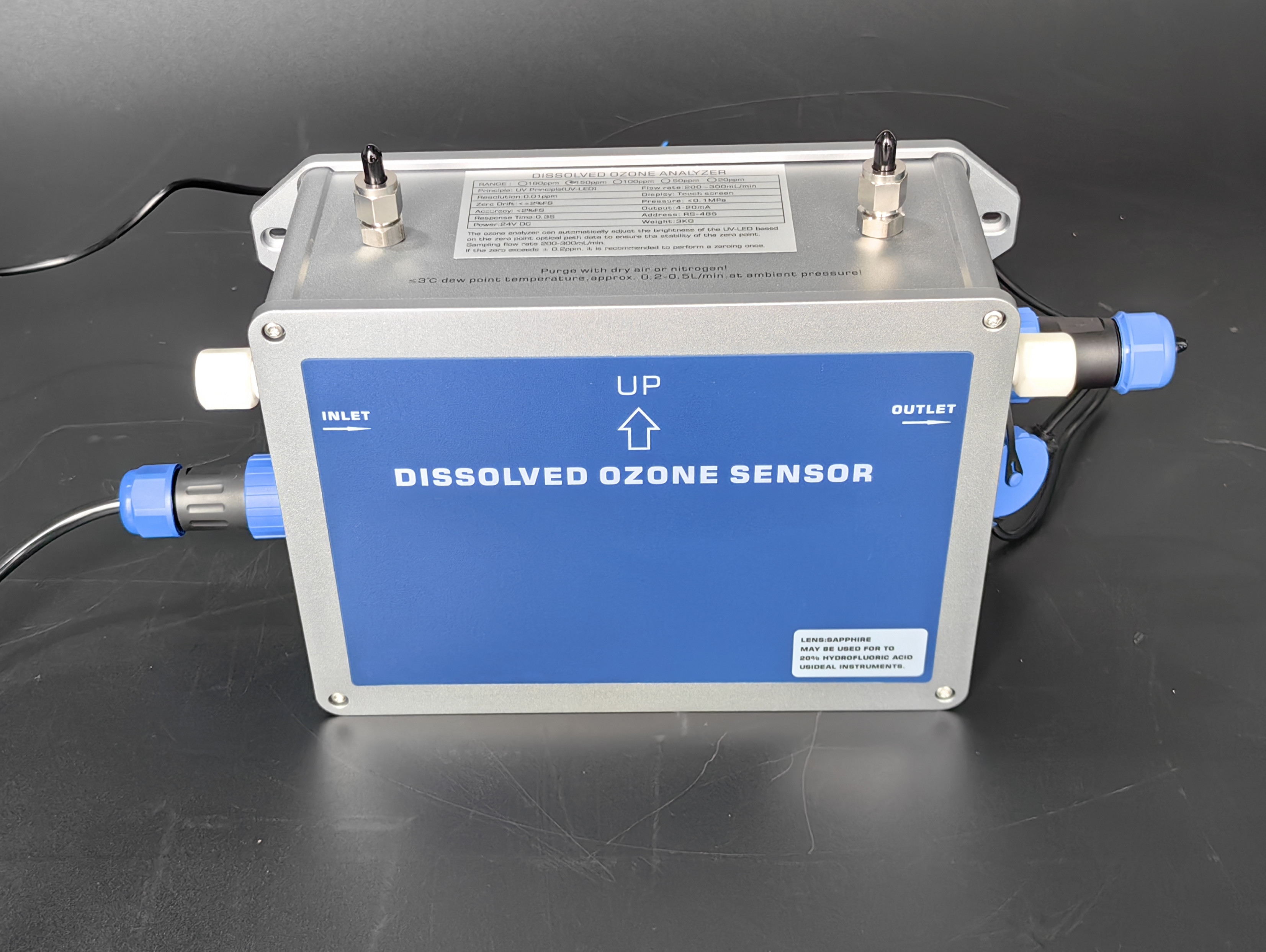 UVOZ-300W phân tích nồng độ ozone nước hòa tan là độ sáng cực tím để đo trực tiếp hàm lượng ozone của nước siêu tinh khiết hoặc nước hỗn độn liên tục.Phiên bản tùy chỉnh là UVOZ-300W-HF cho 20% hydrofluorH. Các vật liệu tiếp xúc với nước ozone là: PTFE, FFPM, PFA, và thạch anh hoặc sapphire.và được trang bị giao diện hoạt động màn hình cảm ứng. đầu ra với 4-20 mA và RS-485 đường tín hiệu được kết nối trực tiếp với PLC.UVOZ-300W phân tích nồng độ ozone hòa tan nước có chức năng của hệ thống điều chỉnh tự động nguồn ánh sáng cực tím, có thể điều chỉnh độ sáng của nguồn ánh sáng cực tím LED theo dữ liệu ánh sáng tham chiếu để đảm bảo sự ổn định của điểm không.Máy phân tích ozone này có thể hoạt động liên tục trong 24 giờ mà không ngừngSự ổn định vượt trội của máy phân tích nồng độ ozone này đạt được thông qua việc sử dụng một hệ thống quang hai chùm thực sự với một nguồn ánh sáng UV LED cực kỳ lâu.UVOZ-300W phân tích nồng độ ozone hòa tan trong nước là một vỏ nhôm thiết kế nước phun, lớp bảo vệ: IP65, kích thước: 200x150x80mm (WxHxD), trọng lượng khoảng 3 kg.có một móc trên thiết kế phía sau trong nhu cầu cài đặtDòng chảy nước của máy phân tích nồng độ nước ozone hòa tan là 200-300 ml/min, nếu cần thiết để kiểm soát dòng chảy,phải lắp đặt một máy throttle hoặc máy đo lưu lượng tại cửa ra của máy phân tích nồng độ nước ozone hòa tan, các ga phải được đặt phía sau cảm biến (không bao giờ ở phía trước của nó!Nó được nghiêm cấm cho nước ozone với bong bóng nước để đi vào các phân tích nước ozone hòa tan.) Hãy chắc chắn để duy trì sự sạch sẽ của các phân tích nồng độ nước ozone hòa tan, để duy trì sự sạch sẽ của cảm biến bên trong của các phân tích nước ozone hòa tan,phân tích nồng độ ozone hòa tan trong nước được khuyến cáo mỗi 2 tuần để điều chỉnh nồng độ không, điều chỉnh không cần phải vượt qua không ozone mà không có màu nước.